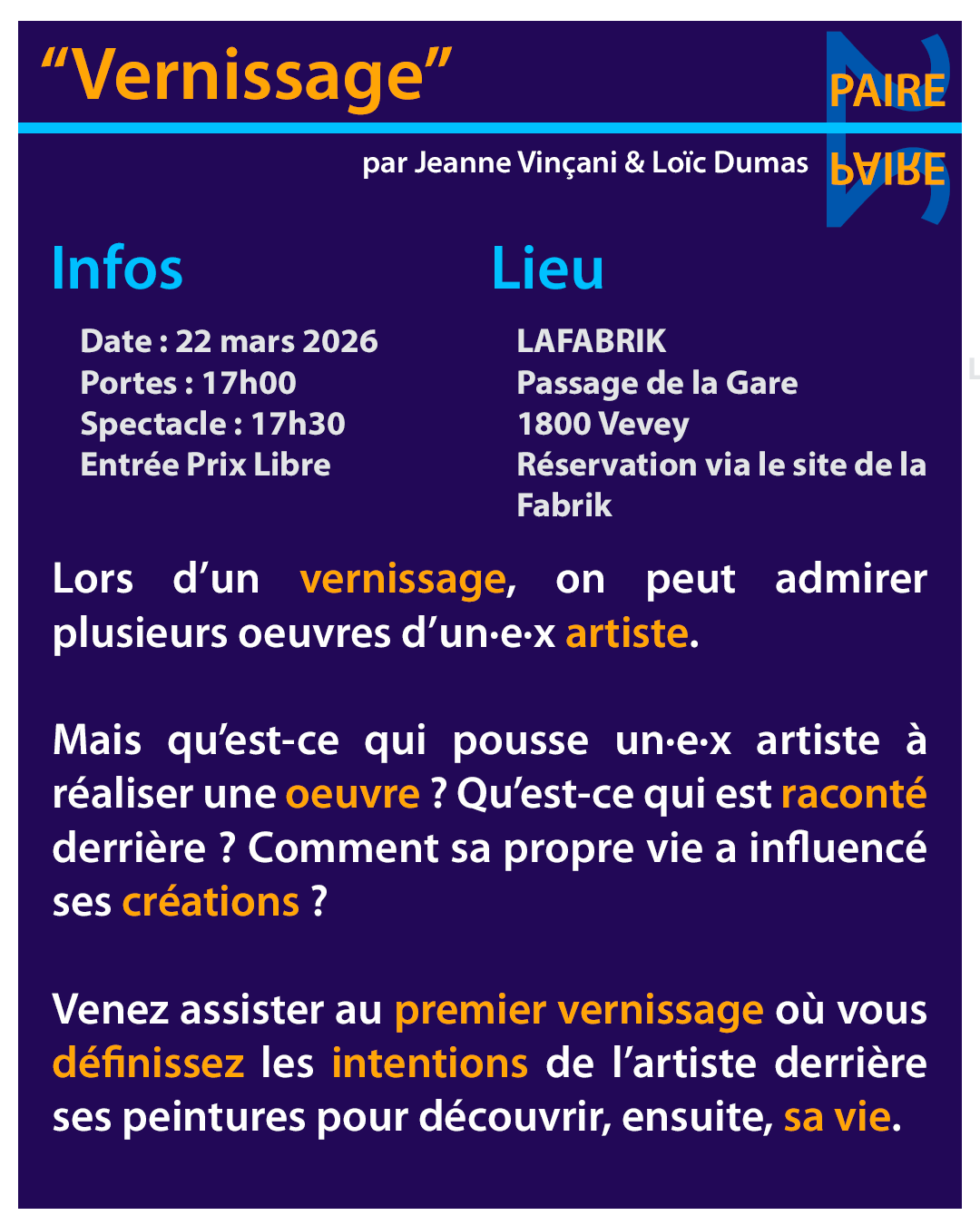 Dimanche 22 mars 2026 :“Vernissage” par Jeanne Vinçani & Loïc Dumas